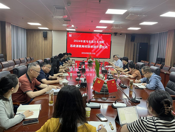 8月15日上午,马克思主义学院2024年度思政课教师校级培训在综合楼716会议室开班。校党委书记韩军出席开班仪式。