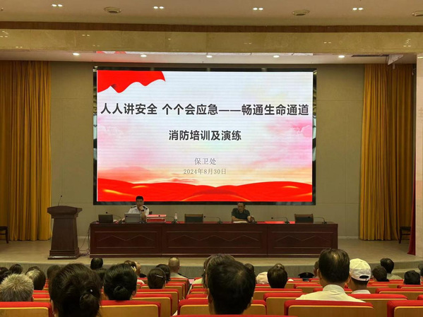 为提高各服务单位工作人员的消防安全意识,掌握消防安全知识技能,8月30日上午,我校邀请安徽领安消防教官伍宏炜在综合楼报告厅开展消防安全培训,保卫处处长陈雪峰主持培训会。