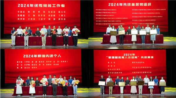 党委委员、副校长陈林宣读“两优一先”、学工系统最美系列人物、师德先进个人、管理服务育人示范岗先进集体和个人、青年艺术家人才培育项目等各项表彰决定与通知。