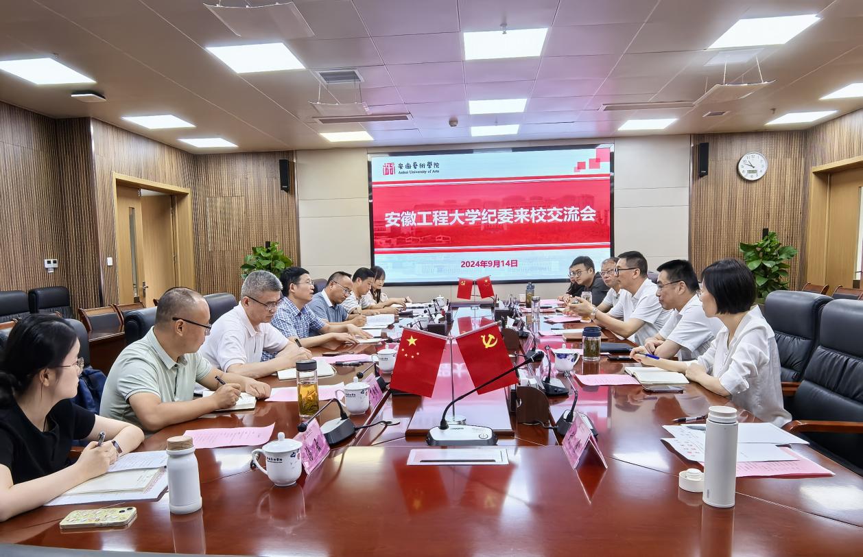 9月14日上午,安徽工程大学党委常委、纪委书记、监察专员程双四一行来校调研交流。校党委委员、纪委书记、监察专员程宗林,纪委办公室(巡察办公室)全体成员参加座谈交流。