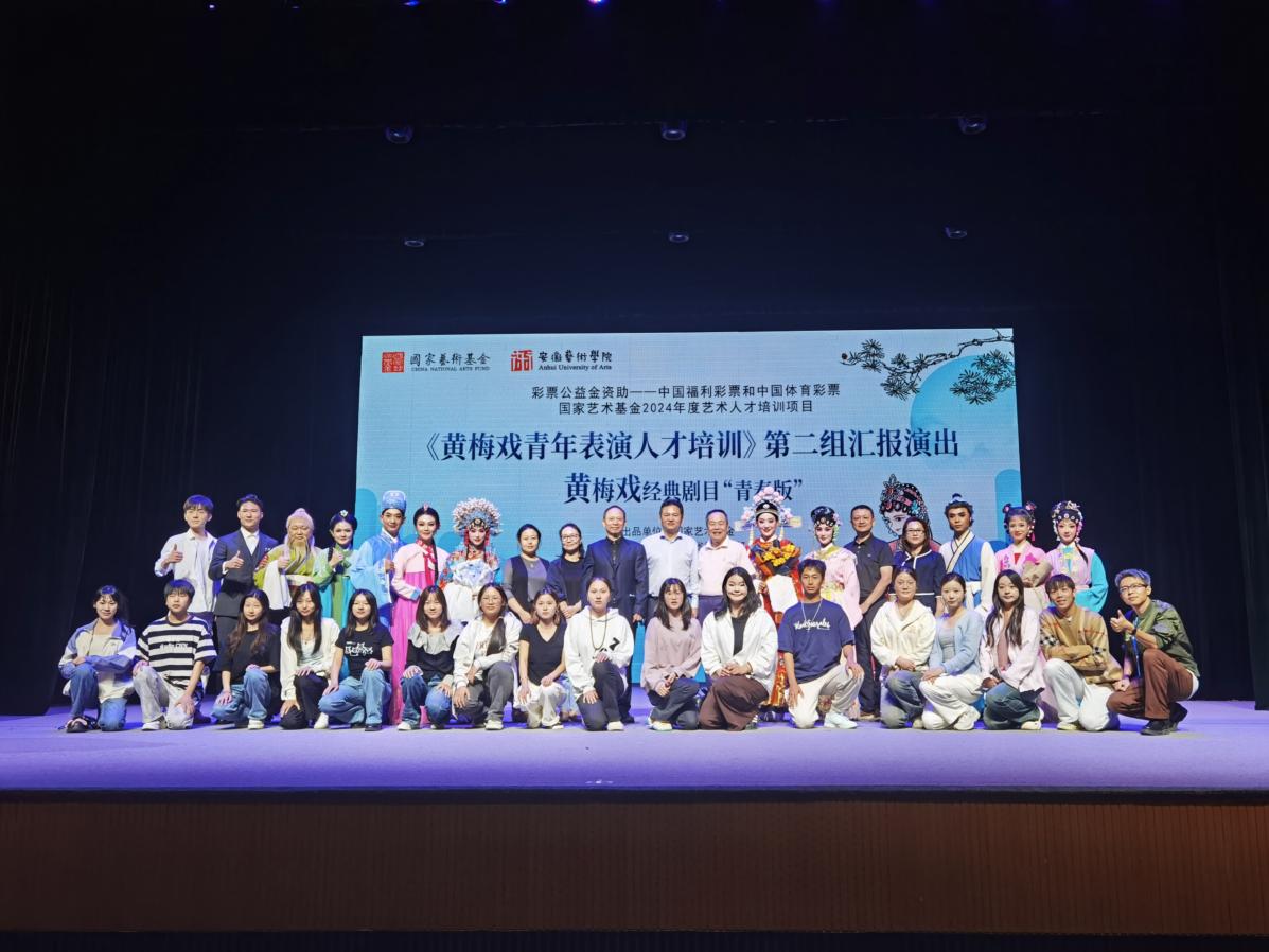 9月23日晚,国家艺术基金人才培养项目《黄梅戏青年表演人才培训》第二组汇报演出《黄梅戏经典剧目“青春版”》在安徽省黄梅戏剧院好人剧场精彩上演,向社会公开展示培训成果。校党委委员、人事处处长、戏剧学院党总支书记曹晓富,项目负责人谢柏樑教授以及相关教师和戏曲专业学生代表观看了此次演出。