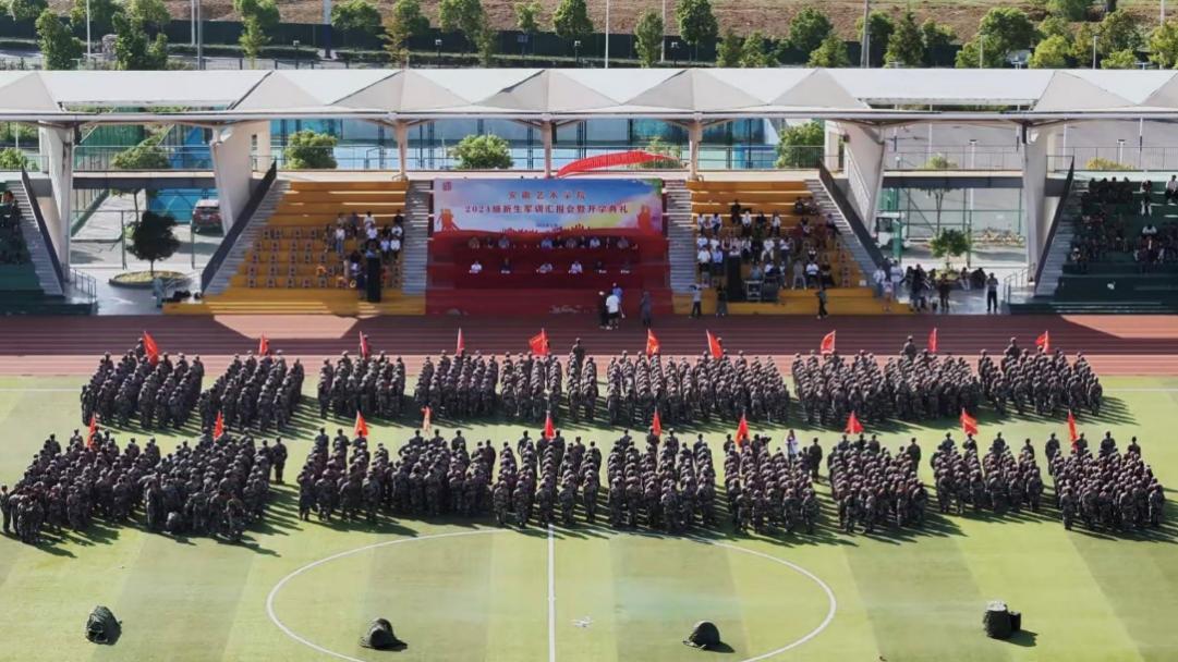 全体参训学生以各连队为单位进行分列式表演。国旗护卫队、尖刀连以及19个连队的2024级学生军容严肃、昂首挺胸,口号响亮、步伐整齐,展现了安艺学子朝气蓬勃、热情饱满的青春风采。女子擒敌拳方队身姿飒爽,气势冲天,擒敌十六动,招招有力;男子战术分队手持步枪、目光坚定,拳影翻飞、脚步沉稳,尽显男儿英雄色;舞蹈方队表演的百人花鼓灯,以舞蹈的形式诠释了刚柔并济,用行动传承中华传统文化。整场汇报演出展示了同学们21天来的训练成果,整齐划一的动作、昂扬的斗志和坚定的眼神,让在场的观众为之动容,纷纷发出热烈的掌声,学生们用实际行动诠释“军训铸魂”的深刻内涵。