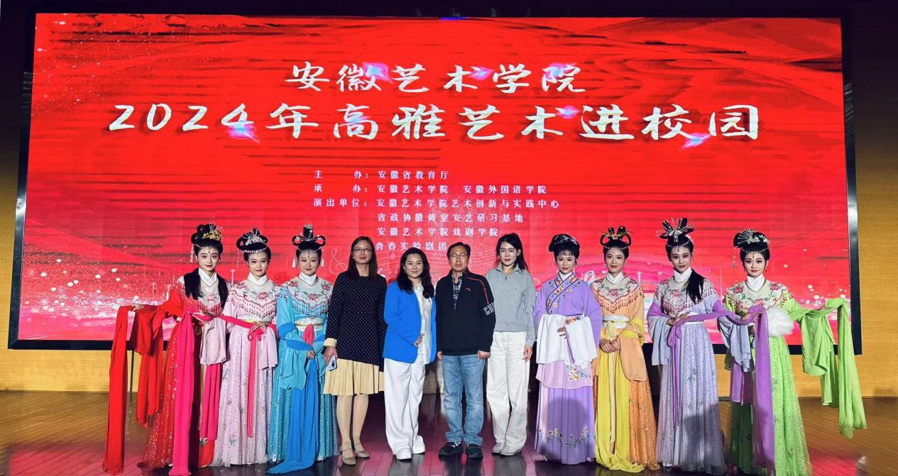 近日,我校师生开展了两场高水平的高雅艺术专场演出,为合肥工业大学和安徽外国语学院两校师生送去了精彩的文艺作品。校党委委员、副校长柳友荣,党委委员、组织部部长王琍琍看望了安徽外国语学院演出师生。