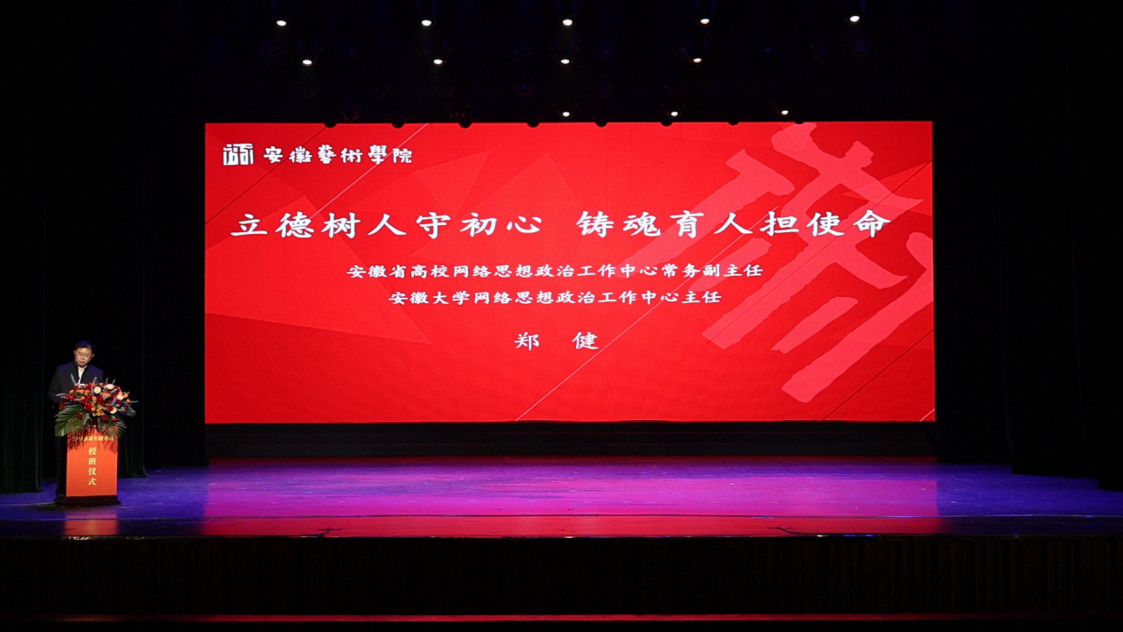 校党委委员、副校长柳友荣,安徽省高校网络思想政治工作中心常务副主任、安徽大学网络思想政治工作中心主任郑健,校党委委员、人事处处长、戏剧学院党总支书记曹晓富出席仪式。