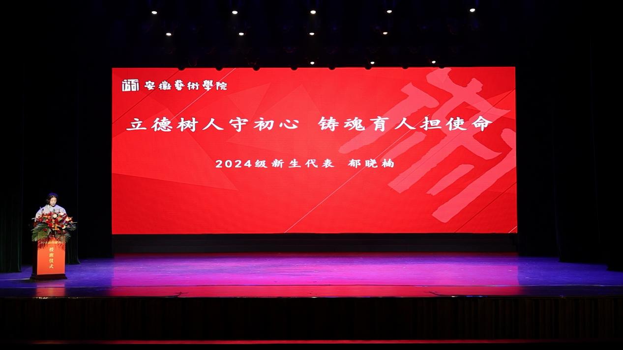 2024级新生代表郁晓楠讲述了自己励志的成长历程以及进入学校后所感受到的学校和辅导员的关爱,让大家深深体会到安艺大家庭的温暖与包容。