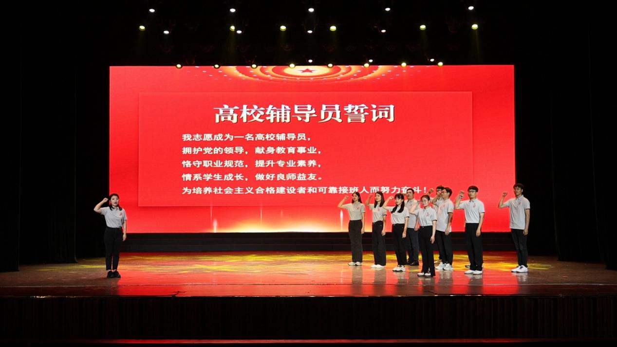 仪式上,全体2024级新生辅导员郑重宣誓,誓言铿锵有力,彰显了对教育事业的忠诚、期待与决心。