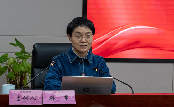 韩军以“建设社会主义文化强国”为题,围绕“为什么要建设文化强国”“习近平总书记如何重视文化工作”“怎样成为德艺双馨的文化强国建设者”三个方面,进行深入浅出、生动风趣的讲授。课上,韩军结合自身的学习工作经历和学校的发展列举大量案例,极大地激发了同学们的学习热情和参与热情,课堂学习氛围浓厚,同学们纷纷表示受益匪浅。