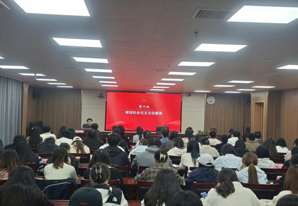 韩军以“建设社会主义文化强国”为题,围绕“为什么要建设文化强国”“习近平总书记如何重视文化工作”“怎样成为德艺双馨的文化强国建设者”三个方面,进行深入浅出、生动风趣的讲授。课上,韩军结合自身的学习工作经历和学校的发展列举大量案例,极大地激发了同学们的学习热情和参与热情,课堂学习氛围浓厚,同学们纷纷表示受益匪浅。