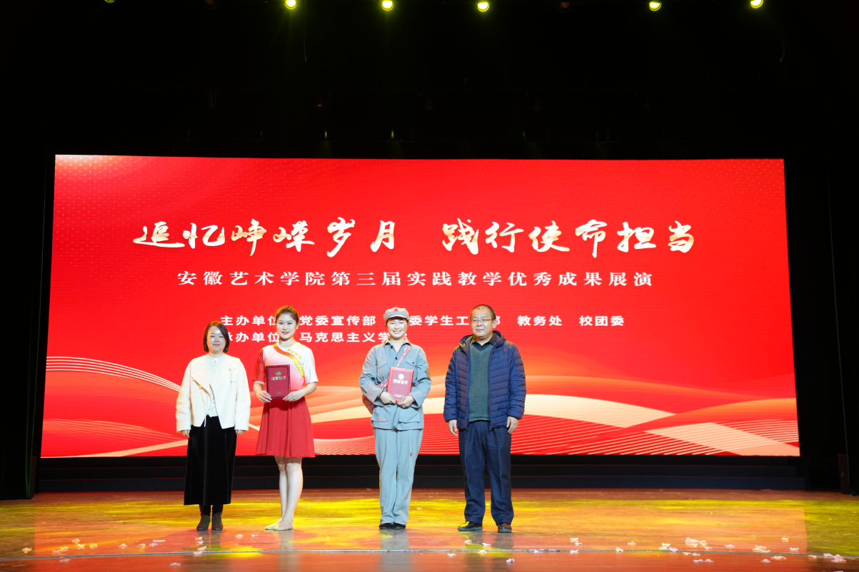马克思主义学院以思想政治理论实践课为依托,以“追忆峥嵘岁月 践行使命担当”为主题开展了覆盖2023级全体本科生的实践教学。在思政课教师和专业课教师共同指导下,同学们编创朗诵、歌曲、短剧、黄梅戏、舞蹈等节目近五十个,创作油画、图片、摄影、综合材料和设计等作品百余件,用艺术化载体讴歌在中国共产党的领导下,75年来国家建设所取得的伟大成就,以大学生喜闻乐见的形式阐释“中国共产党为什么能,中国特色社会主义为什么好,归根到底是马克思主义行,是中国化时代化的马克思主义行”。