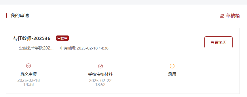 我校2025年校聘教师招聘公告初审结果已开通查询,请报名考生登录“博业体育(中国)官方网站-登录入口2025年校聘教师招聘”进行查询。如下图即为初审通过,不再单独通知。