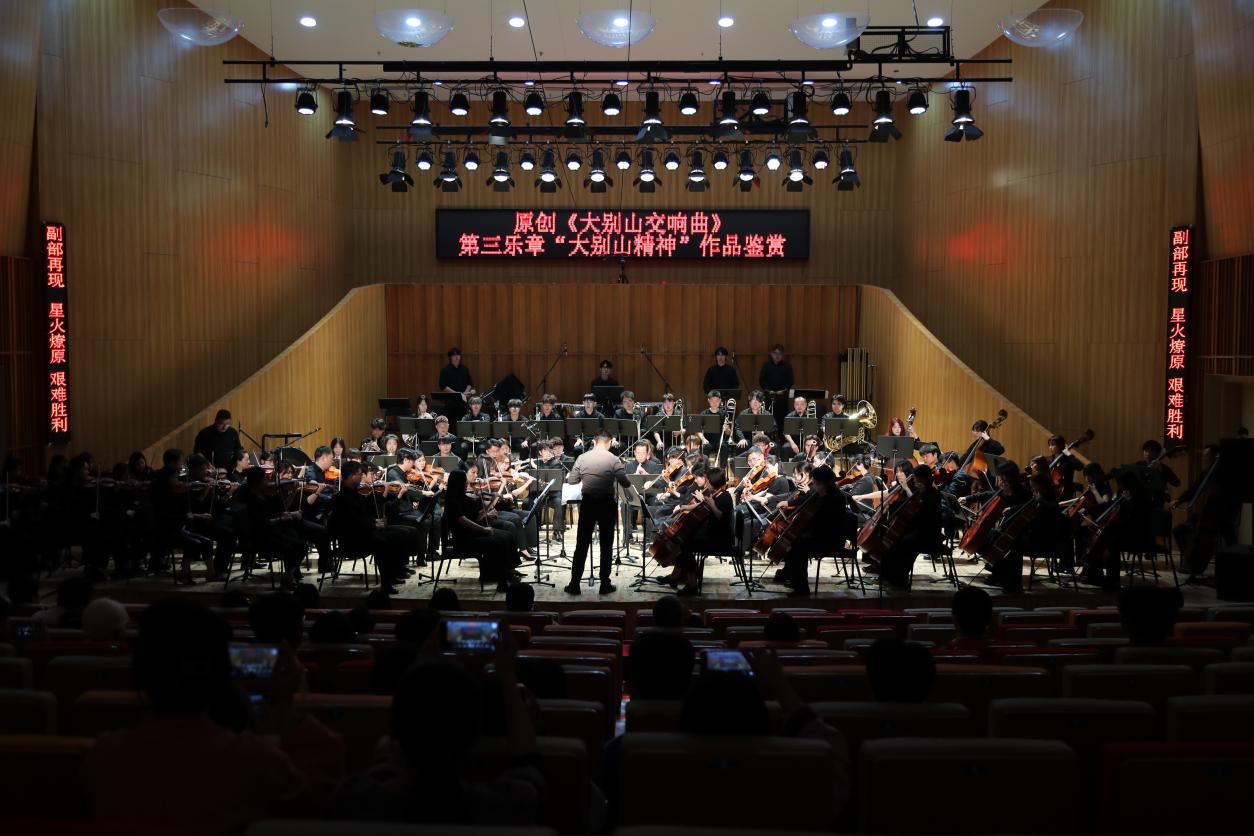 音乐会落幕后,音乐学院领导和全体参演教师召开了作品鉴赏会。李伟对演出给予了称赞并对演职人员表示祝贺,对该部原创作品的专业性、艺术性及其文化属性、思想内涵给予充分认可。参演教师表示,排练中虽面临高难技法的挑战,但最终攻克难关,乐团的演奏水平得到提升,学生的专业水平也有所促进,乐团成员配合更加默契。师生们从最初认为的难以完成,到最终非常激情和饱满地呈现,正是“大别山精神”在音乐学院的真实体现。大家对《大别山交响曲》给予高度评价,一致认定其兼具深刻思想性与卓越艺术性,是不可多得的佳作。
