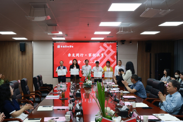 听课结束后举行“亲友同行·家校共育”座谈会。校党委副书记陈文兵、各职能部门负责人、二级学院代表与亲友团成员围绕“家校协同育人”展开深度“问学”互动。学生处副处长高英娟主持会议,