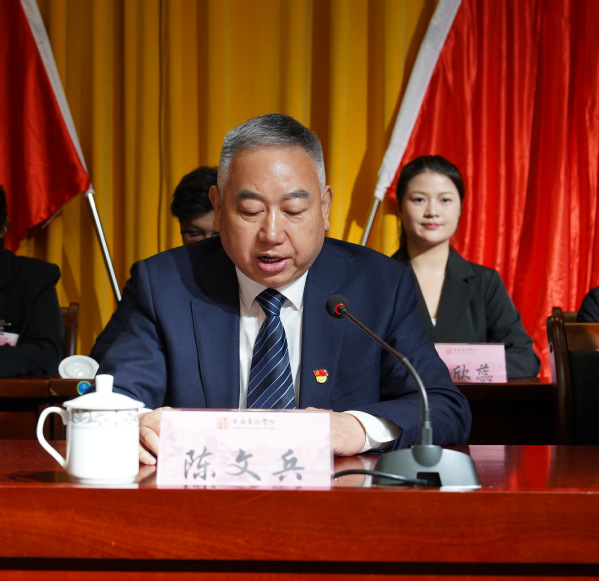 陈文兵在讲话中指出,我校当选省学联第十届委员会主席团成员单位,荣获安徽省五四红旗团委称号,可见各级学生组织有凝聚力与战斗力,团学工作具创新力与生命力。他对全校各级党团组织和学生组织提出希望,要敢做领跑者,引领学子坚定信念;当做践行者,服务大局、奉献社会;善做探索者,推进学生会改革。鼓励青年珍惜时光,奋力拼搏,学校会提供支持,相信青年能肩负使命,以青春理想跑出佳绩。