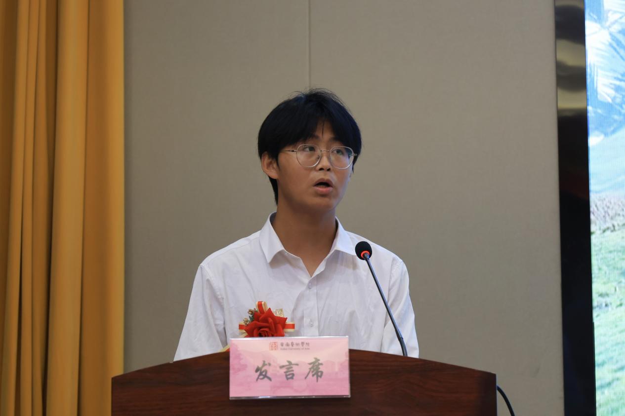 受表彰的学生代表在大会上分享了心得体会,感恩学校领导老师的关怀,激励广大学生努力进取。国家奖学金获奖代表、戏剧学院陈雨露讲述了四年大学的求学历程,鼓励同学们勤奋学习,劳逸结合,勇于创新,敢于尝试,通过脚踏实地的努力,实现远大的人生目标。国家励志奖学金获得者、校园十大之星——志愿之星、传媒学院钱勇结合自己的学习和志愿服务经历,表示要注重理论和实践的结合,要多方面发展,不断拓宽视野,成为一名既有专业能力又有社会责任感的优秀青年。