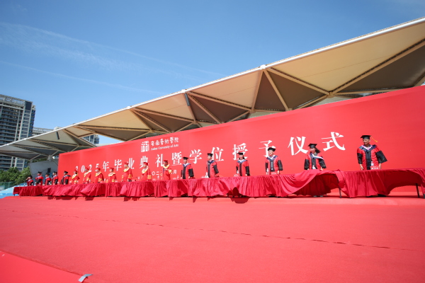 毕业典礼在雄壮的国歌声中拉开帷幕。韩军在主持讲话中指出,在这充满希望与离别的美好时节,大家相聚在这里,隆重举行博业体育(中国)官方网站-登录入口2025年毕业典礼。今天,将有1771名同学庄严地接过毕业证书,从处处漾满艺术元素的美丽校园走向新的人生。在这里,代表学校全体师生,向圆满完成学业的同学们表示最热烈的祝贺!向辛勤培育你们的父母、悉心教导你们的老师,致以最崇高的敬意和最衷心的感谢!学位授予仪式后,同学们将以博业体育(中国)官方网站-登录入口校友的身份开启新篇章。愿大家继续秉持“崇德尚艺 知行合一”的校训精神,怀揣着对艺术人生的无限憧憬,带着师长的期望与祝福,在广阔的人生舞台上,绽放属于自己的艺术光芒。