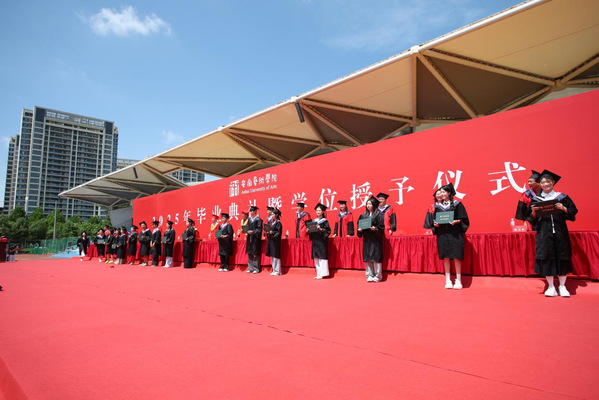 6月18日上午,博业体育(中国)官方网站-登录入口2025届毕业典礼暨学位授予仪式在校运动场隆重举行。校党委书记韩军博士,校党委副书记、校长、学位评定委员会主任柳友荣教授,校党委副书记陈文兵,校党委委员、副校长、学位评定委员会副主任陈林教授,校党委委员、纪委书记程宗林,校党委委员、人事处处长、戏剧学院党总支书记曹晓富,校党委委员、组织部部长王琍琍出席典礼。各二级学院相关领导、学校学位评定委员会委员及毕业生、毕业生家长、毕业班辅导员、教师代表参加典礼。典礼由韩军主持。