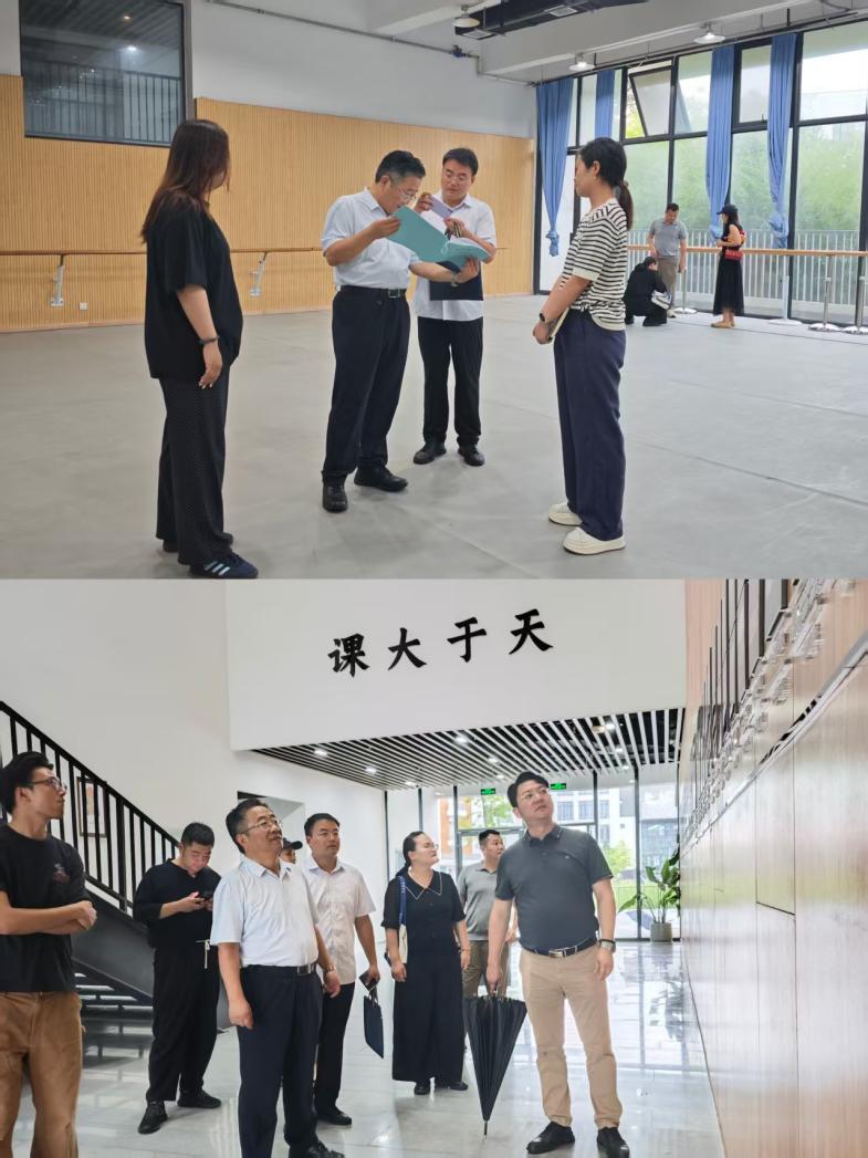 会后,高玉华一行前往音乐学院、舞蹈学院和戏剧学院,就舞蹈房、琴房、教室建设和学生培养等方面展开调研。音乐学院副院长张祖顺、舞蹈学院副院长李玉煜和艺术创新与实践中心创演工作部主任秦帅给予细致讲解。
