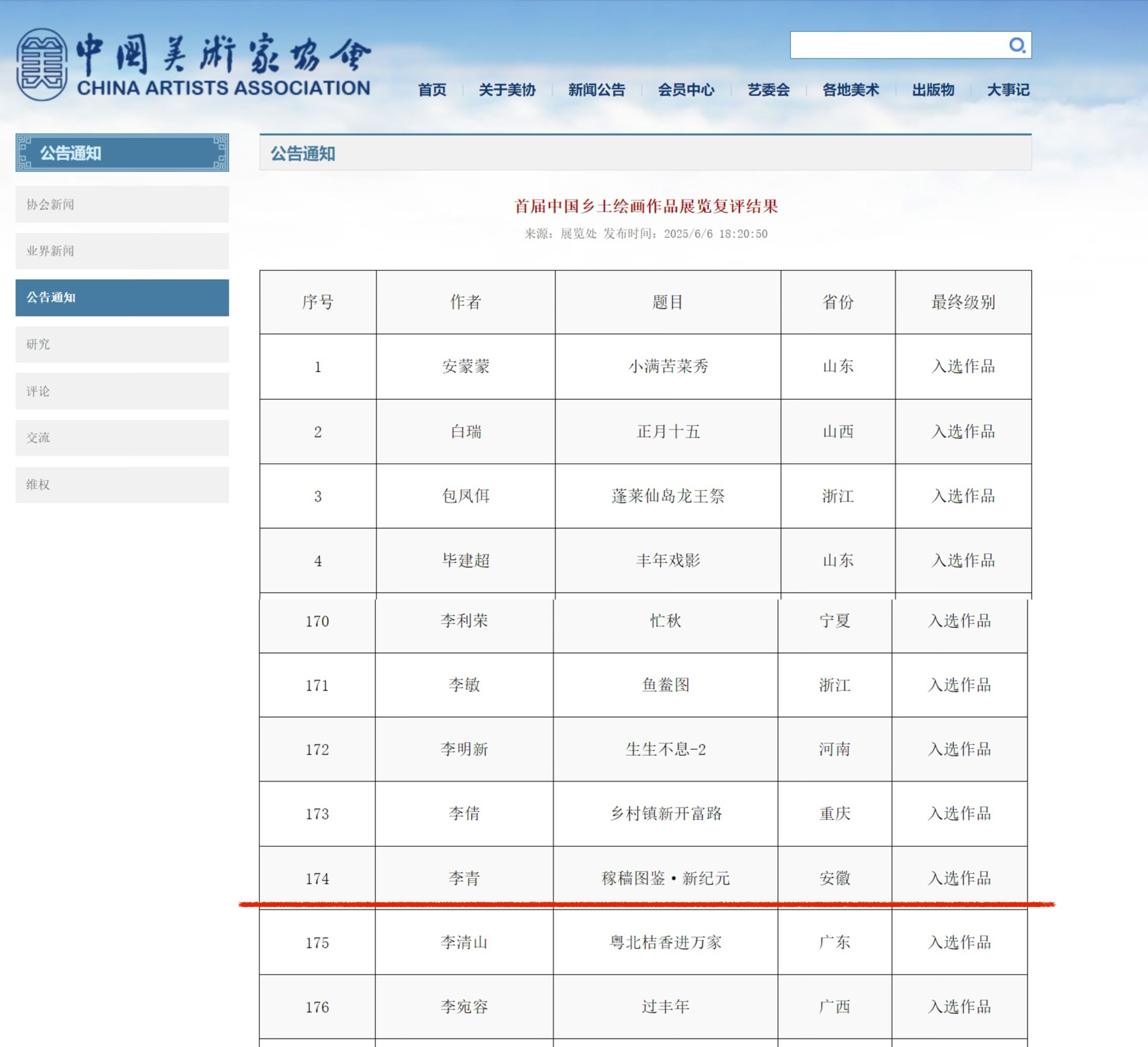 近日,中国美术家协会官方网站公布了“首届中国乡土绘画作品展览”复评结果,美术学院李青老师《稼穑图鉴·新纪元》作品脱颖而出,成功入选。