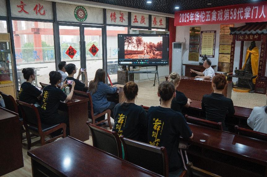 6月27日,本次三下乡活动的成果展示在华祖庵举行。由传承人和教师组成的考核小组,根据学员们在动作规范性、流畅度、力度以及神韵方面的表现,进行了现场考核并给予了评分。随后,学员们被授予了《国家级非遗华佗五禽戏结业证书》。活动的尾声,师生与四位传承人的弟子在华祖庵内共同表演并录制了五禽戏的13式,向在场的观众展示了五禽戏的独特魅力,圆满结束了此次文化探索之旅。
