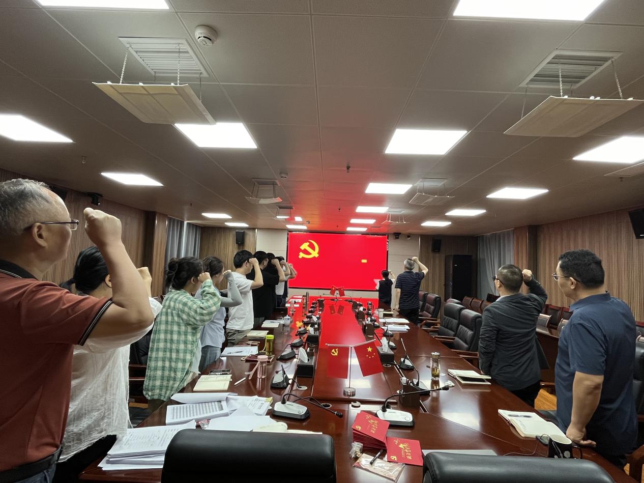 全体党员面向鲜红的党旗,庄严地举起右手,重温入党时的铮铮誓言。一句句坚定有力的誓词在会议室回荡,仿佛将大家带回到了入党的那一刻,提醒着每一位党员要时刻牢记自己的初心和使命,为党的事业不懈奋斗。