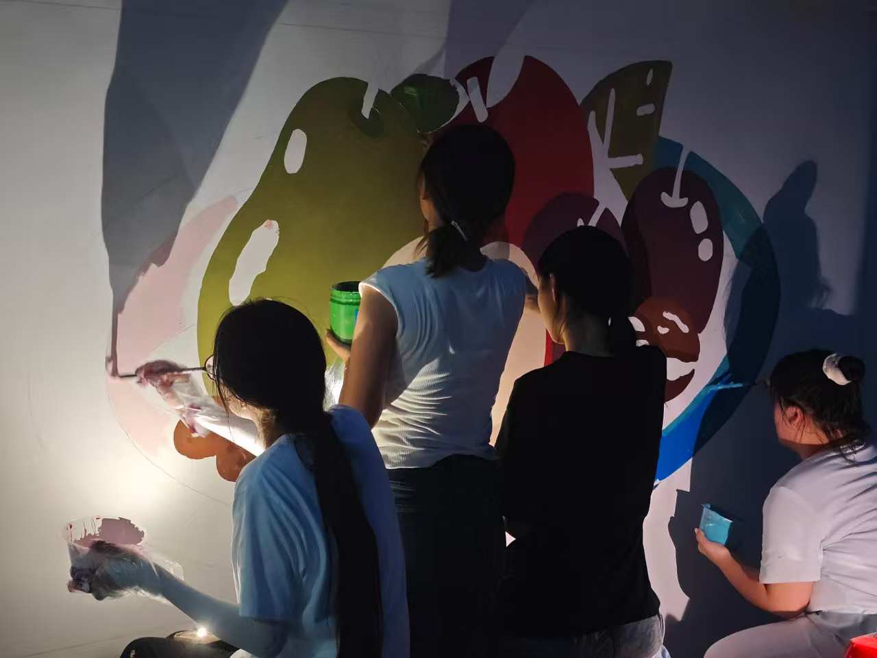 在三天的时间里,师生们共完成了15面墙的高质量墙绘作品,将果子园乡的美景与美食生动地展现在墙面上。一幅幅富有创意和生命力的画作,不仅美化了乡村环境,更注入了青春的活力与潮流元素。