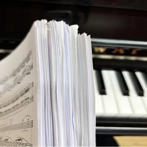 (学校的琴房、练过的琴谱)