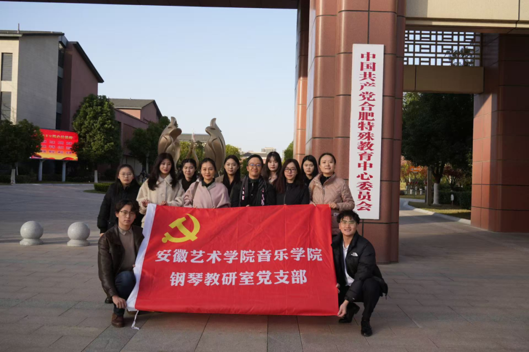 (郁晓楠在合肥市特殊教育中心参加公益演出,第二排左二为郁晓楠)
