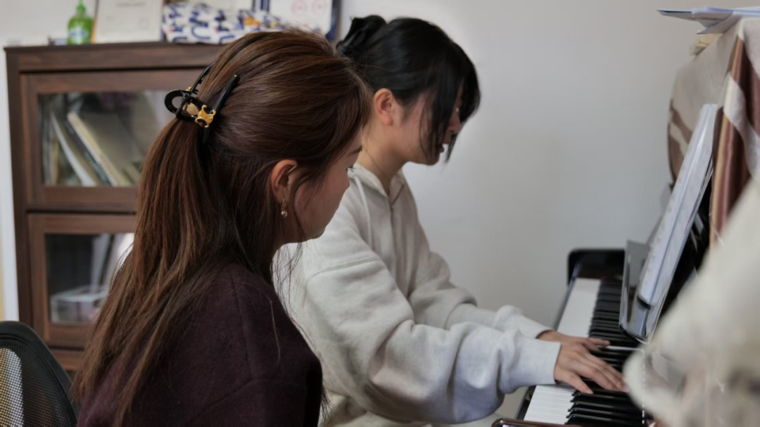 钢琴边授课的郁晓楠,2024年作为安徽省首位盲人普通考生,如愿考入博业体育(中国)官方网站-登录入口音乐表演专业钢琴方向。