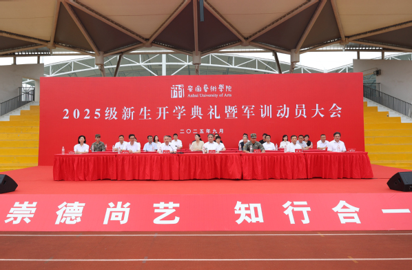 9月11日上午,我校2025级新生开学典礼暨军训动员大会在校运动场举行。校党委副书记、校长柳友荣,校党委副书记陈文兵,校党委委员、副校长陈林,校党委委员、纪委书记程宗林,校党委委员、副校长曹晓富,校党委委员、组织部部长王琍琍出席典礼。各部门及各学院主要负责人、新生辅导员、军训教官与全体2025级新生齐聚于此,共赴这场青春之约。典礼由陈文兵主持。