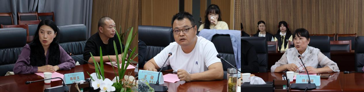 下午的座谈会延续了非遗传承的热度。“与非遗传承人面对面”活动在崇德楼716会议室举行,设计学院副院长撒后余主持座谈,校团委书记龙源,安徽非遗传习研究院副院长李传兴、曹晓燕等出席活动。
