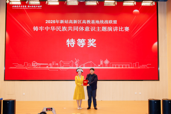10月22日下午,在2025年合肥市新站高新区高教基地统战联盟举办的“铸牢中华民族共同体意识”主题演讲比赛中,我校播音与主持艺术专业学生张贝贝从18所院校的24名参赛学生中脱颖而出,荣获特等奖。