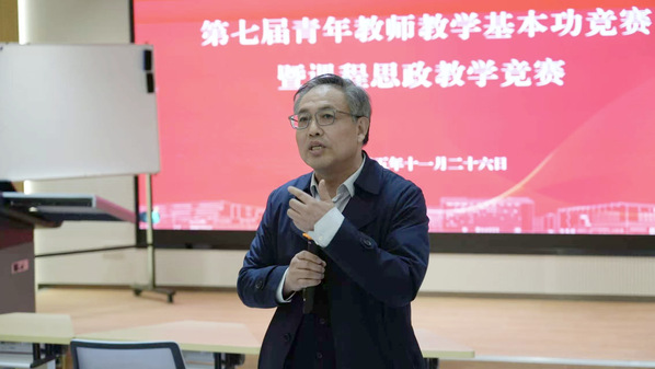 11月26日下午,第七届青年教师教学基本功暨课程思政教学竞赛决赛在崇德楼125阶梯教室落幕。8位晋级教师以专业知识构建教学框架,将多元思政元素融入教学各环节。校党委书记韩军,党委副书记、校长柳友荣,党委副书记陈文兵,党委委员、纪委书记、监察专员程宗林与全体教师到场观摩比赛。