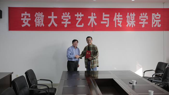 10月21日下午,安徽省徽京剧院副院长李龙斌受聘安徽大学艺术与传媒学院客座教授仪式隆重举行。聘任仪式由张晶副院长主持,院党委书记、院长周之虎教授为李龙斌教授颁发了聘书。教务处处长周爱宝、戏剧影视系直属党支部书记董兆和、戏剧影视系主任助理吴彬参加了受聘仪式。