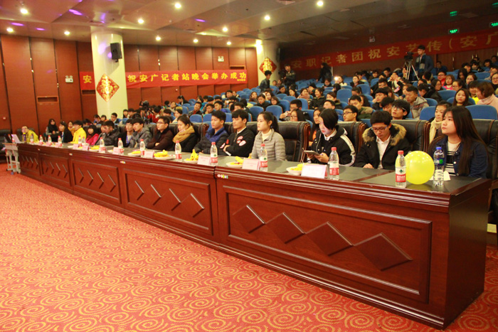 为了加强新站区高校校媒之间的交流,展现我院传媒学子的风采。12月5日,由院团委、大学生记者站主办,院广播电视台、社团联合会协办的首届新站区记者站晚会在我院学术报告厅隆重举办。安徽中医药大学、安徽农业大学经济技术学院、安徽广播影视职业技术学院、安徽职业技术学院、安徽城市管理技术学院、合肥幼儿师范高等专科学校、合肥铁路工程学校等兄弟院校记者站代表与我院大学生记者站、院广播电视台、社团联合会、院学生会、院青年志愿者协会等代表欢聚一堂,共同庆祝首届新站区记者站晚会。