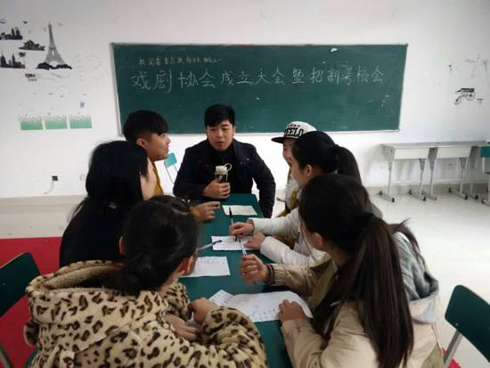 2015年12月7日中午12点,在2教108教室,院团委戏剧协会成立暨招新大会成功举办。会议由戏剧协会指导老师秦帅主持。本次会议完成了对戏剧协会的各项职能安排工作,在协会内部设立会长、副会长、幕后组、创作组、表演组,并确定了各部门的职责和工作内容。秦帅老师布置了未来一个月的工作任务。在招新大会上,戏剧协会从表演专业、主持与播音专业、绘画专业、电视节目制作专业、广播电视技术专业等相关专业中共招募成员11人。该戏剧协会是我院新成立的专业类学生社团。协会的成立目的在于丰富学生的第二课堂,让不同专业的同学接触表演,为学院培养更多优秀人才,为学生毕业后走出校门、走向社会奠定了坚实的基础。