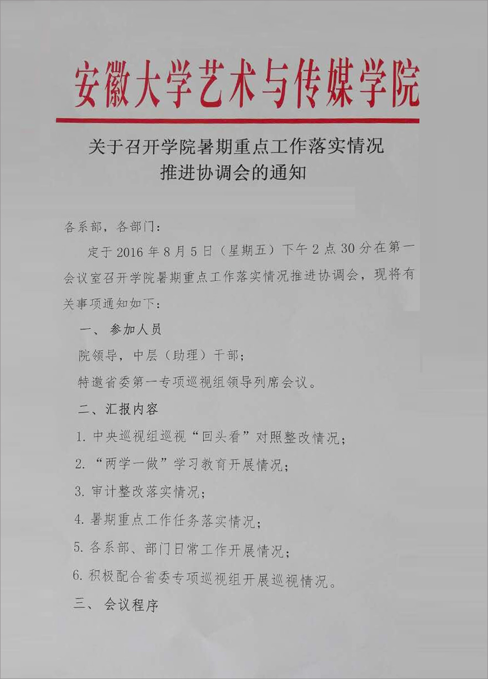 关于召开学院暑期重点工作落实情况推进协调会的通知