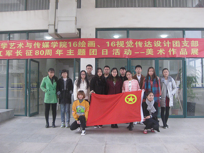 为纪念红军长征胜利80周年,11月9日、10日,美术设计系16级绘画、16级视觉传达设计团支部在第二教学楼一楼大厅举办了“纪念长征胜利80周年书画作品展”主题团日活动。