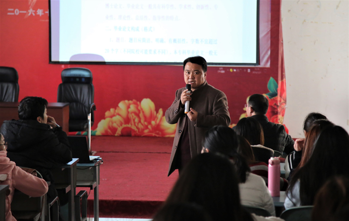 陈老师用自己的论文写作的实例,深入浅出的把本科毕业论文的撰写要求方法进行了认真指导,让大家认识到毕业论文写作方面的严谨性与重要性。他希望本届专升本班的同学一定要认真对待自己毕业论文的写作,这样才有资格拿到学士学位证书。(文/詹同保 图/康宁)