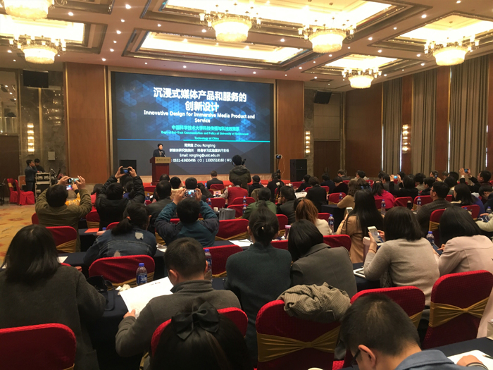 论坛主题分为主题发言和交流研讨两个部分。在主题发言阶段,安哈尔特应用科学大学马蒂尔斯·史略尔教授就德国媒体技术教学与科研状况同大家进行了精彩讲解与剖析;安徽大学江淮学院院长、博士生导师芮必峰教授则从国家战略层面的高度,解析网络安全;原驻德国外交官秦俊峰结合自身在外交战线十余年的工作实践经历,与大家讲述了德国媒体眼中的中国形象;中国科技大学周荣庭教授则现场为大家演示AR技术,阐述了沉浸式媒体产品与服务的创新设计,让现场嘉宾们眼前一亮;安哈尔特应用科学大学博士瑞德尔·特里斯坦与诺曼·霍茨豪尔兹从不同层面分析了现代媒体处理技术带来的机遇与挑战;我院罗耀东教授与王琍琍副教授也先后登台,做精彩发言,罗老师从艺术与媒体技术的关系角度,王老师则从万物互联视角下的新媒体教育变革的角度给现场的嘉宾提供了不同的解读视角;安徽广播电视台总编室副主任王永连先生,从业界角度,利用大量的数据和案例对电视行业当下的转型进行梳理和分析……
