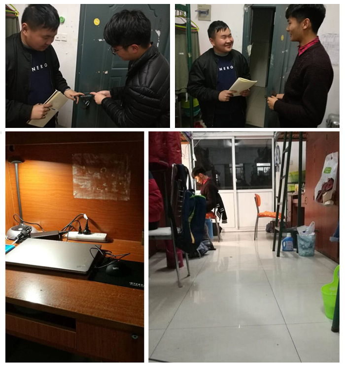 本次宿舍安全卫生抽查是随机抽查的,同学们事先并不知情。检查人员重点针对宿舍卫生、大功率电器进行了细致的检查,并对在检查中出现的问题进行了记录。大部分宿舍总体效果不错,干净整洁,例如:412,502,503,529等,床铺上物品及其他生活用品摆放整齐,而且有些宿舍还进行了适当的宿舍装饰,十分温馨。能给人一种温馨怡人的感觉。但也有一些宿舍表现不是太好,由于物品多,摆放就杂乱无序,学生干部在检查过程中对问题特别严重的宿舍做了记录并给出说明,劝其立即整改。