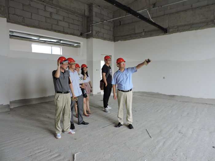 最后,支部成员在基建部同事带领下参观了正在建设中的新校区,并重点参观了即将迁入的新办公室所在的艺术设计楼。看到快要完工的办公室,大家热火朝天地对办公室进行规划和设计,切身感受到自己也如同正在建设的校舍一样一砖一瓦地为学院的组建筹建做着努力,同时对学院美好的明天充满希冀和期待。(文/陆璐)