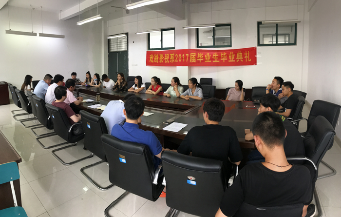 7月3日下午,戏剧影视系在四楼会议室举行2017届专科毕业生毕业典礼。会议由系党总支副书记陈明海主持,党总支书记董兆和、副主任李伟、主任助理汪晓明、办公室主任傅润杨、学管办主任冯传胜、学生党支部书记曹磊出席会议,2017届专科毕业生参加了会议。