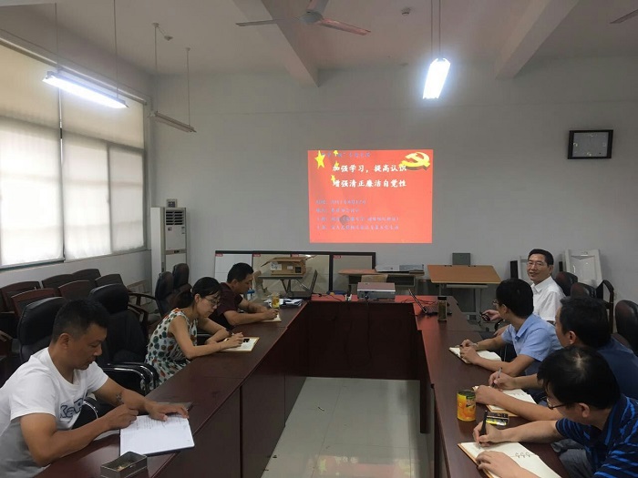8月12日上午,机关党总支第五支部“两学一做”学习教育党课在第二会议室举行。党课由学院纪委副书记刘海主讲,第五党支部书记王立仁主持。
