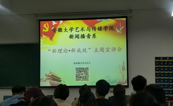 10月16日晚,新闻播音系党总支在2教406教室开展“新理论·新成就”主题宣讲会,用行动迎接党的十九大胜利召开。系党总支宣传委员刘涛,学生党支部副书记、宣传委员杜衎及我系16级全体学生参加宣讲会,学生党员王利元主持了本次活动。