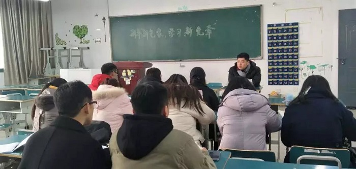 1月8日中午,新闻播音系学生党支部在二教201教室召开了“新年新气象,学习新党章”为主题的座谈会。系学生党支部书记秦帅、组织委员陈伟伟及系学生党支部第四党小组学生党员参加了会议。