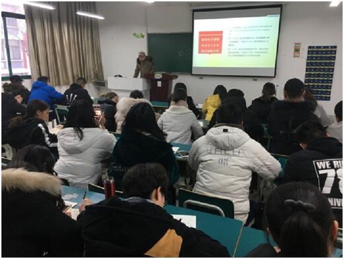 潘捷幽默不失严肃的语言给学生们留下了深刻的印象,让学生在发散思维的同时得到了真知,提升了思想高度。15级学生党员李子修说:“潘老师的语言风趣,把理论知识说的通俗易懂,而且我更深刻的理解了我党的十九大的重要精神,今后一定要更加严格要求自己、努力学习,为社会贡献出自己的力量。”
