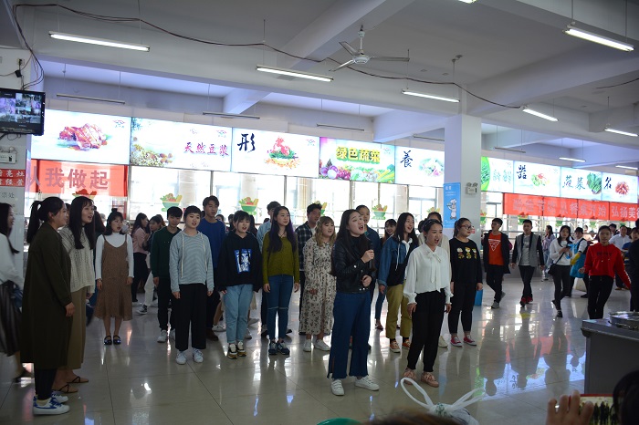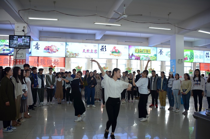 3月28日中午,为丰富校园文化生活,弘扬社会主义核心价值观,院学生会在食堂一楼举办了芳华正茂 校园“快闪”活动。