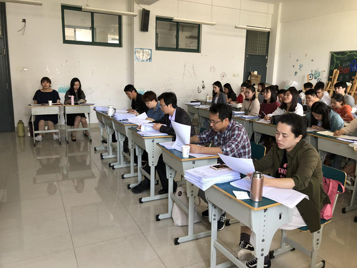 5月9日,美术设计系在二号教学楼407、408教室举行2018届本科毕业论文答辩。本次毕业论文答辩共有78名同学参加,包括视觉传达(专升本)与绘画(专升本)两个班级,系主任罗耀东、副主任刘勇、视觉传达与绘画教研室主要负责人等14位教师参加了答辩。