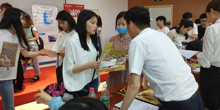 最后,到场的2019届毕业生根据每家企业所提供的信息和职位要求,现场面对面的进行咨询和简历的投递。招聘会还吸引了很多低年级的学生前来观摩,提前感受气氛和了解用人单位的需求。(图/殷俊 文/张娟娟)