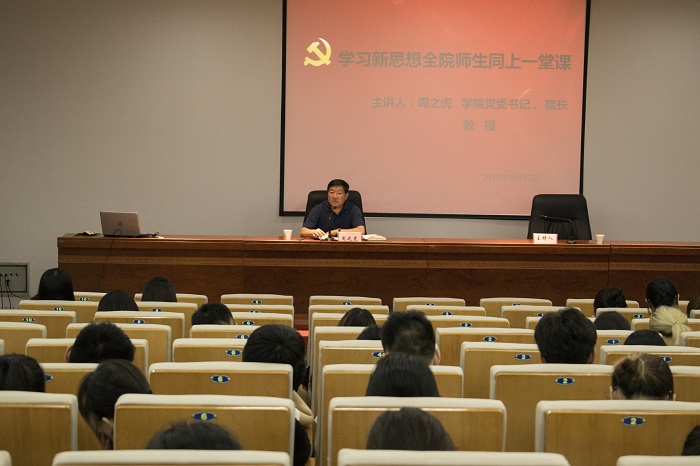 根据教育部和省教育厅文件精神,6月13日,学院组织开展“学习新思想千万师生同上一堂课”活动,学院党委书记、院长周之虎教授在美术楼报告厅为学院200余名师生代表作《坚持全面从严治党》的专题报告,本次报告会由学工部、思政课教研部和团委共同主办,思政部主任吕中华主持。
